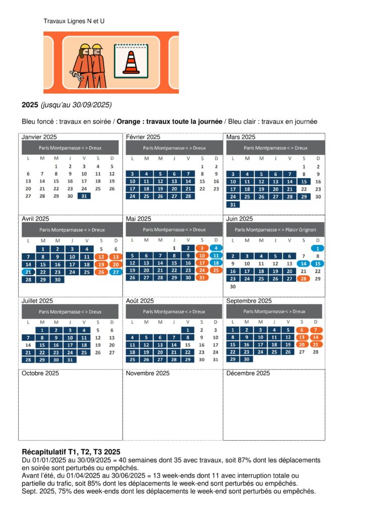 La ligne N nécessite des travaux, et ils sont faits. Chaque mois, on nous annonce 1 voire 2 ou 5 jours de travaux. A chaque fois, il y a modification voire suppression des rames sur toute ou partie de la journée. Ces perturbations gênent voire empêchent nos trajets scolaires, professionnels, de santé ou culturels, voire font préférer la voiture (polluante).